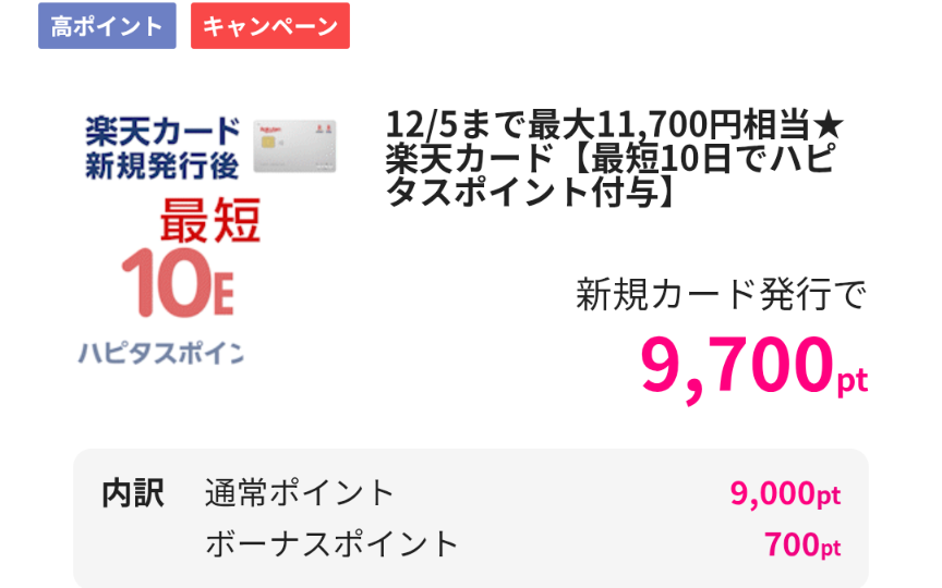 | 獲得ポイント | 4,000ポイント(4,000円相当) +ボーナスポイント6,000円分 |
