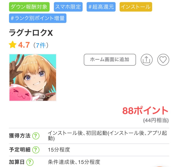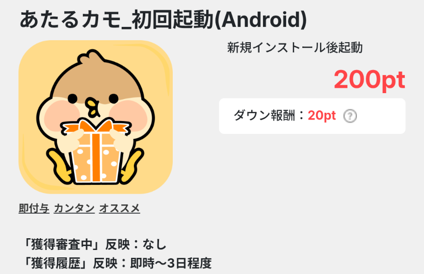 万が一、アプリインストールから初回起動までに1時間以上の間が空いてしまった場合、再度ポイントサイトの案件ページからリンクを経由して進んでください。