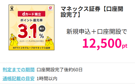 口座開設だけでポイントが獲得できるお得な案件です。