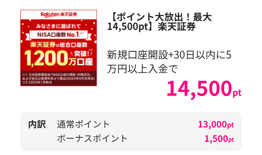 | 獲得ポイント | 14,500ポイント(14,500円相当) |