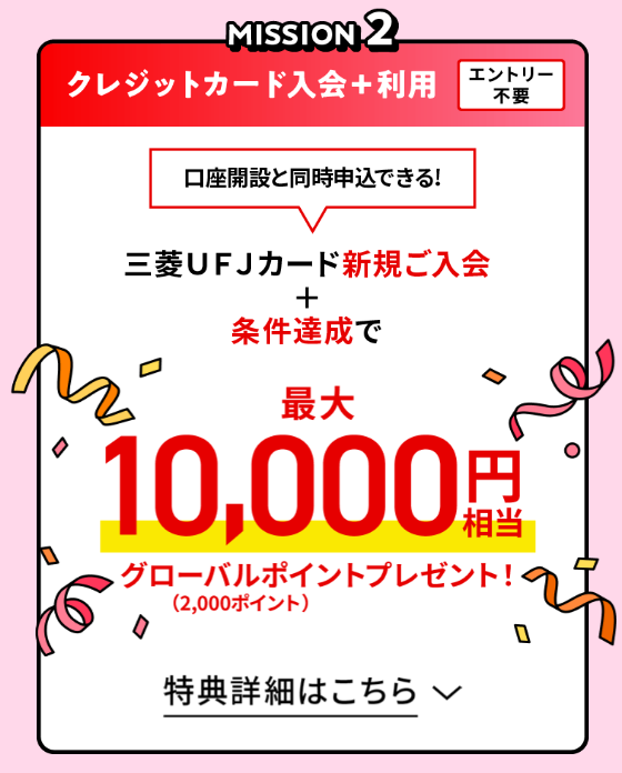 対象は初めて三菱UFJ銀行の口座を開設する方。