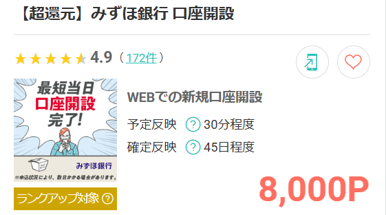 | 獲得ポイント | 8,000ポイント(8,000円相当) |