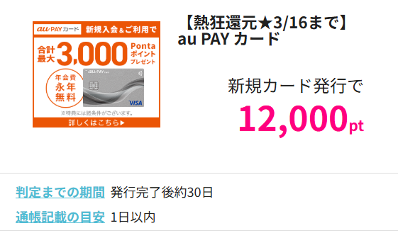 | 獲得ポイント | 3,000ポイント(300円相当) |