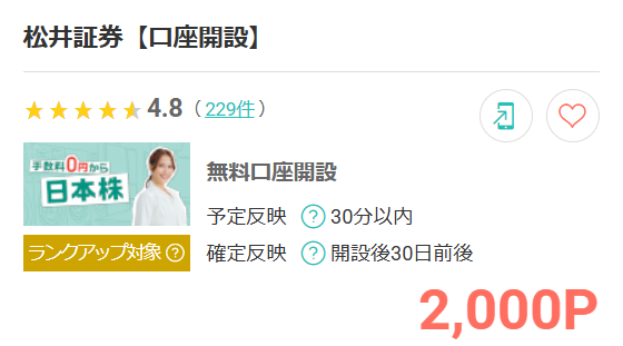口座開設だけでポイントが獲得できるお得な案件です。