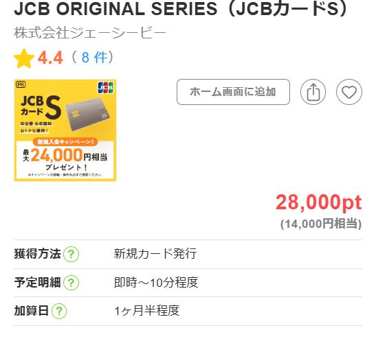 広告名JCB ORIGINAL SERIES(JCBカードS)