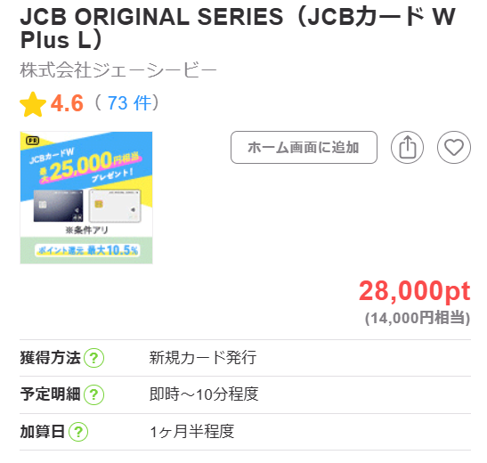 JCB ORIGINAL SERIES(JCBカード W Plus L)